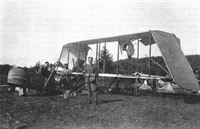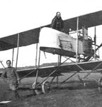 M.llo Pancani with a late production Farman MF in dark finish and with a drop shaped tank over the top wing.