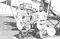 Sergeants Dino Menegoni and Edoardo Olivero, from Argentina, two goods pilots of the 71a Squadriglia, with an artillery sergeant.