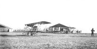 A Farman of the 47a Squadriglia at Dudular; behind it there are French Farman 40 two-seaters and Nieuport fighters.