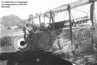 A late production PE of the 36a Squadriglia, with two Lewis guns on the Scarff ring. The pilot is s.ten. Edoardo Garavoglia.