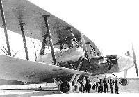 Staaken R.XIVa lined up with Nieuports and Breguets, probably in the Ukraine. In 1919 the German Government allowed DLR to charter a number of aircraft to the Ukraine Government for the transportation of new money for the young state [that the Germans were printing clandestinely]. The Ukraine was at war with Rumania and Poland and wanted to stimulate its economy by introducing a new currency. Some of the DLR aircraft were secretly transferred to the Ukraine and in addition the Ukraine Government chartered the three five-engine Staaken R.XIVa aircraft from DLR. These aircraft had serial numbers R.69, R.70, and R.71 and registration D.129, D.130, and D.131 respecitively. All three were lost. The first, R.69, was confiscated on 29 July by French troops on behalf of the IAACC at the airport of Wien, Aspern. R.71 crashed and burned on 4 August in Oberschlesien. The last Staaken R.XIVa, R.70, commanded by Captain Count Hans Wolf von Harah and with pilots Heinrich Smiltz and Henrig Tretken, was forced down due to fuel problems on 19 September on its way to Kamenets-Podolski. Upon landing the crew was captured by two soldiers of the Rumanian 37th Infantry Regiment. On board the Rumanians found 303 million Griverns (Ukraine roubles), issued 5,6, and 24 October 1918. The Ukraine passengers were sent to a Ukraine-controlled area on the other side of the river Dnestr, while the Germans were imprisoned. The aircraft was repaired by Rumanian aeronautical engineers and flown by Petre Macavei (Technical 1st Lieutenant) and other crew members to the capital of Rumania, Bucharest. On its way the engine caused more trouble, but in the end the aircraft managed to arrive safely. It never flew again, but was stationed at the airport for several years before it was dismantled. Its wooden propellers went to the military museum in Bucharest. Without aircraft, the DLR had to supply new aircraft and offered the Friedrichshafen G.IIIa for Ukraine operations. (Peter M. Grosz collection/STDB)
