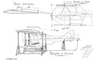 To perform the operation of setting the incidence of 2.6% of the fuselage, the vertical distance rating from the nose of the propeller to the tail tip, which is 297 mm for the Liberty engine, becoming 264 mm for the Renault motor device which is slightly longer. Likewise, the symmetry dimension I = 6m.800 becomes slightly larger. (Pl. XIV).
