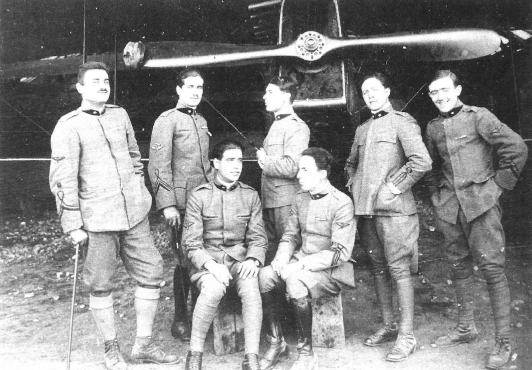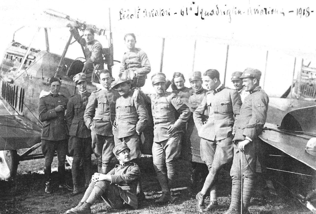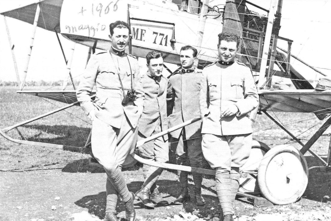 Serg. Michele Allasia, second from the right, was initially a pilot at the 37a Squadriglia, then an ace with the 77a Squadriglia. He died in the crash of a SVA on 20 July 1918.