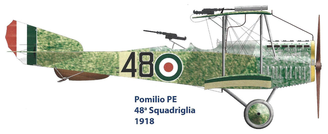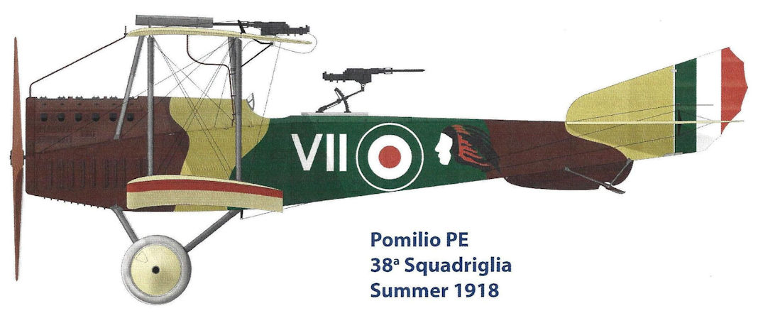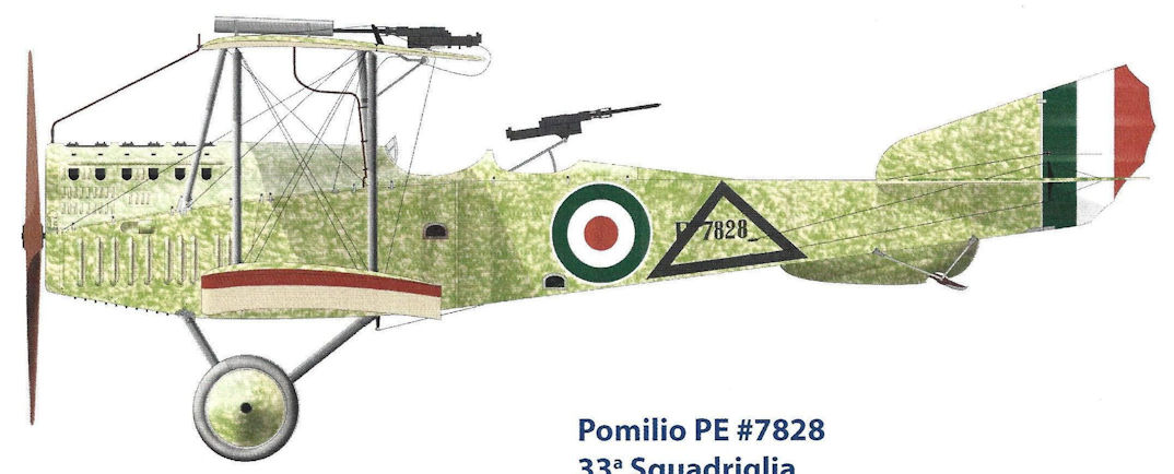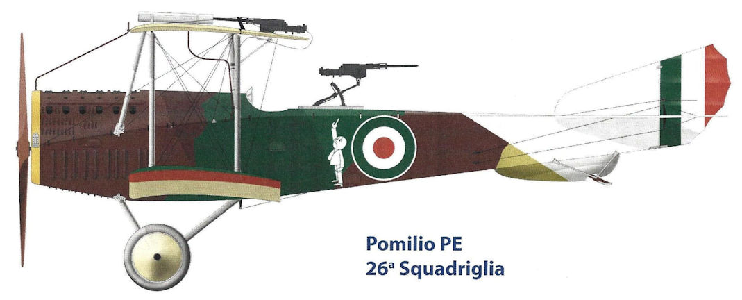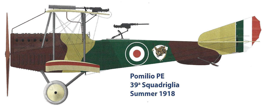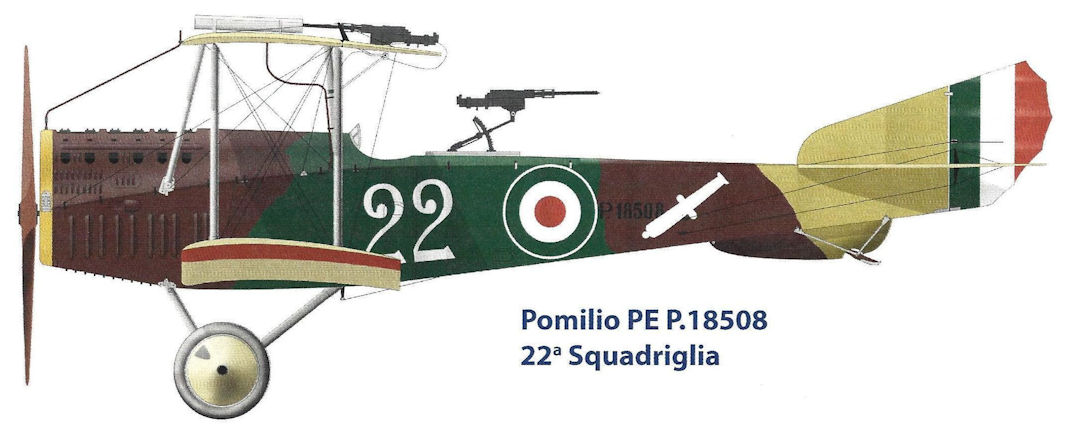 A late-production Pomilio PE, 18508, showing the new insignia of the 22a Squadriglia, a white cannon.