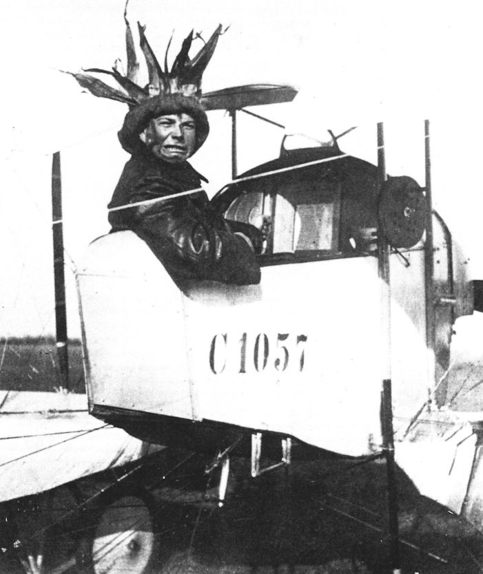 Carlo Magno Grandinetti flying into battle dressed like a Native American to scare the Austrians into believing that the United States had already entered the war.