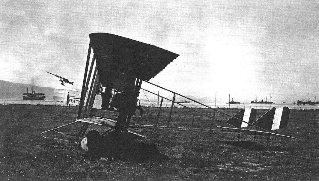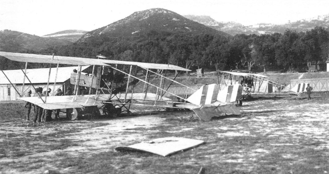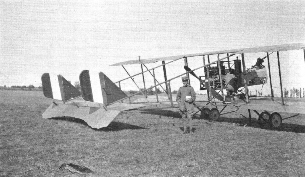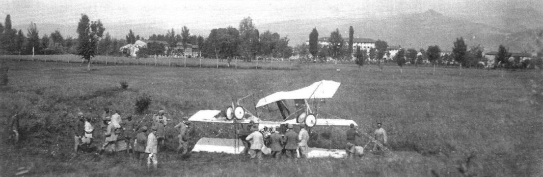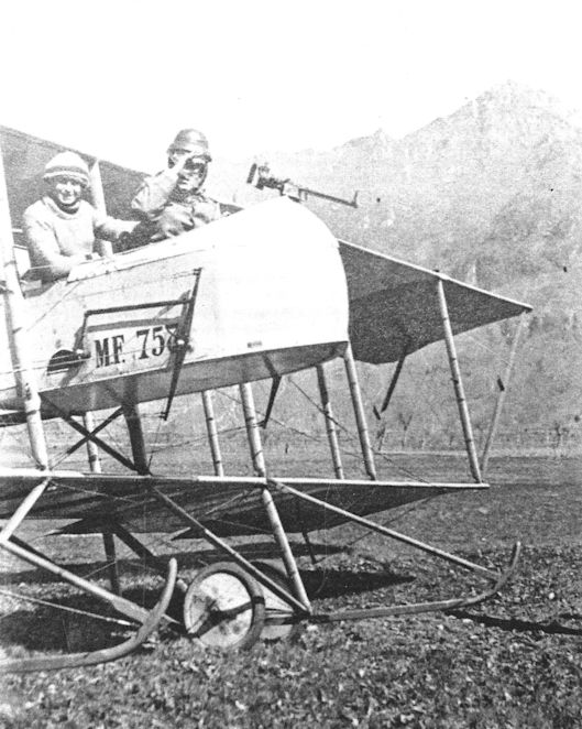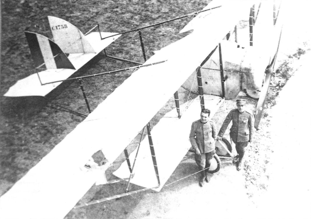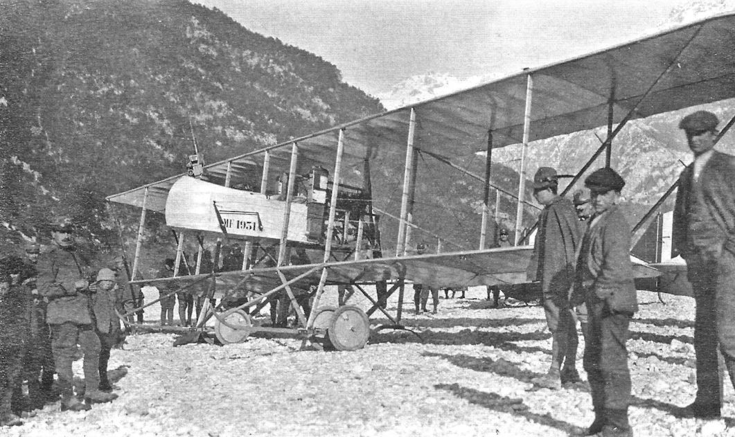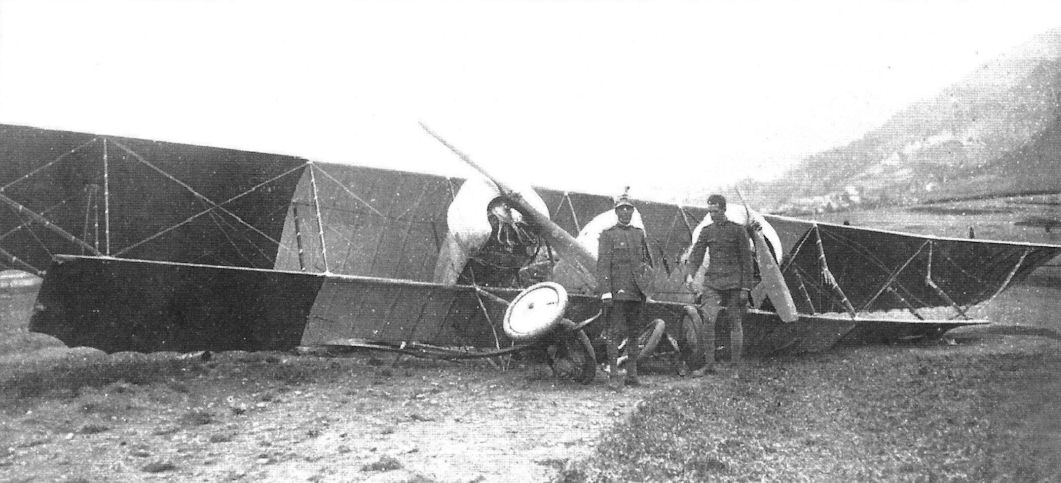 Farman 787 of the 27a Squadriglia with the Mexican pilot De Anna, still with the rank of corporal. (Archive Caliaro)