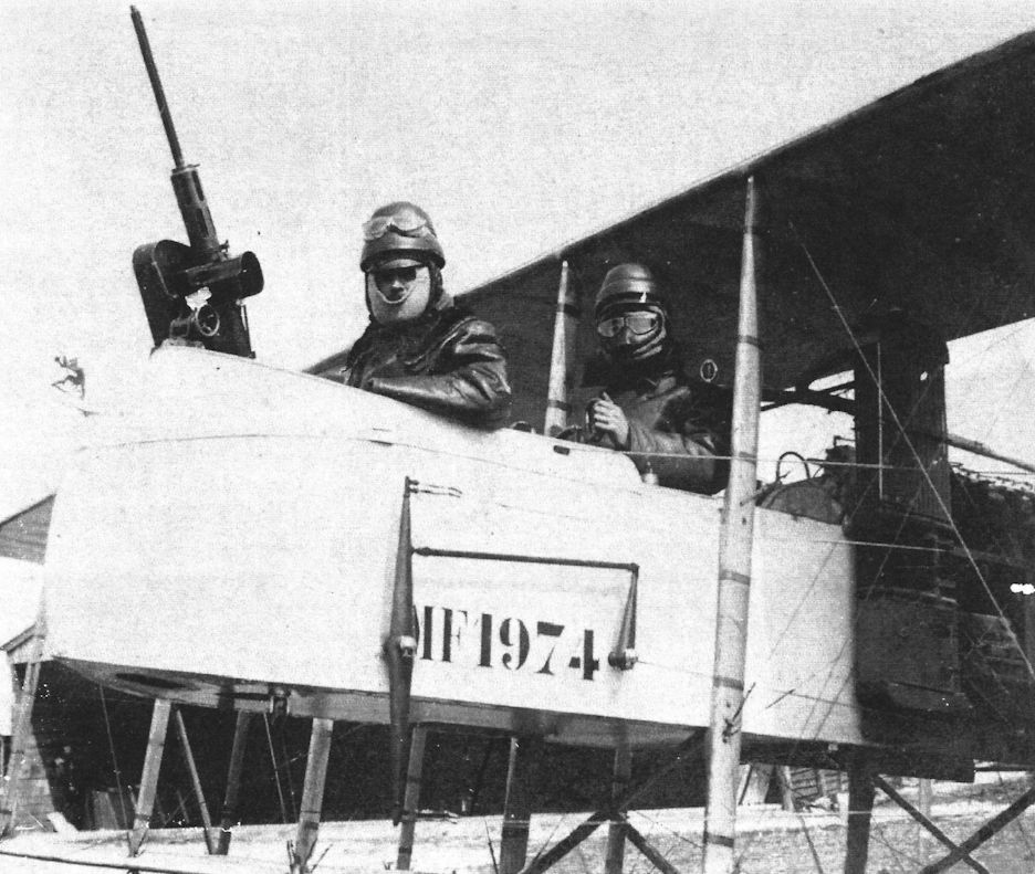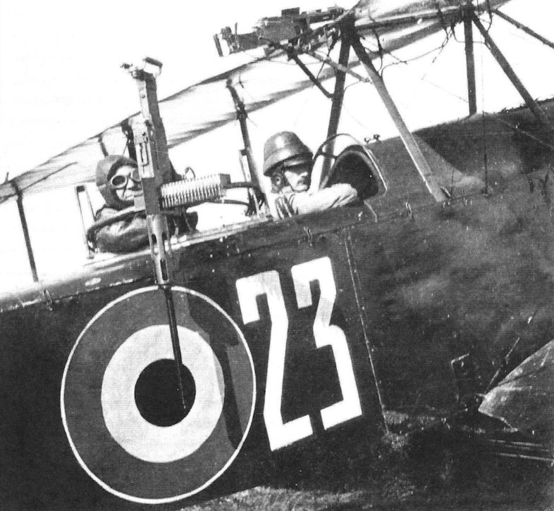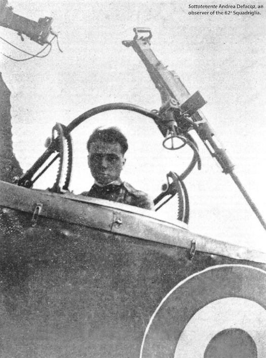 A late production PE of the 36a Squadriglia, with two Lewis guns on the Scarff ring. The pilot is s.ten. Edoardo Garavoglia.