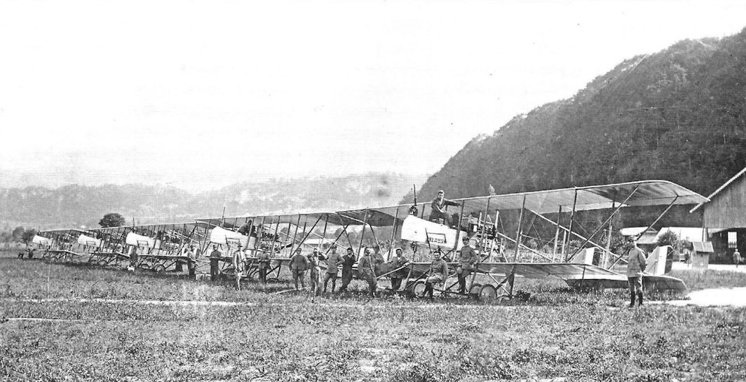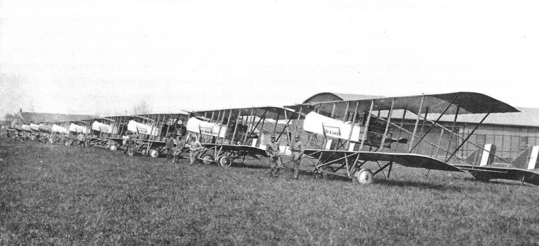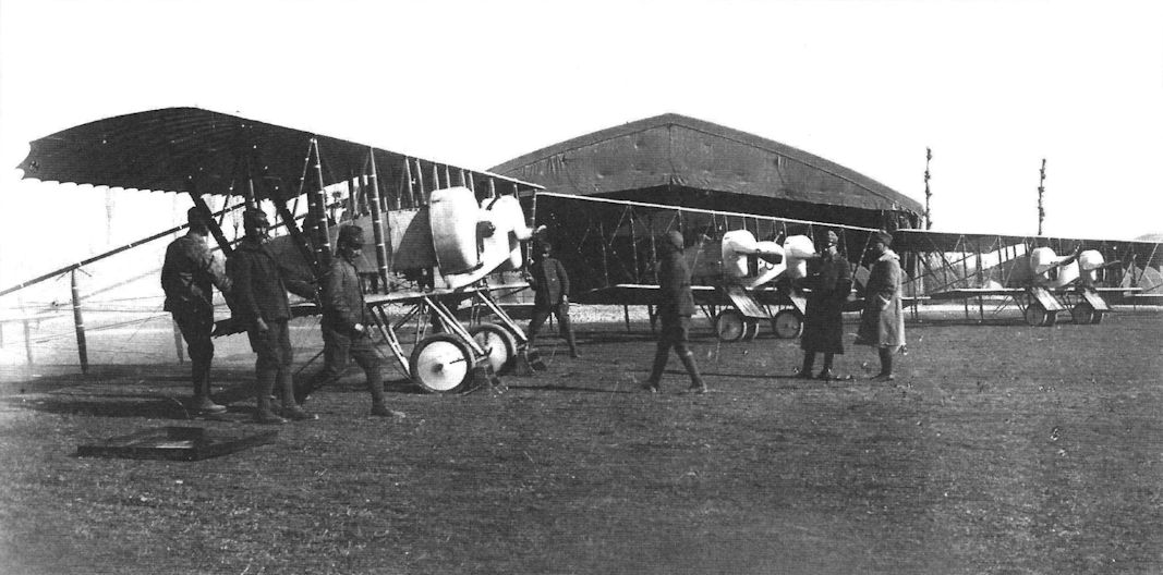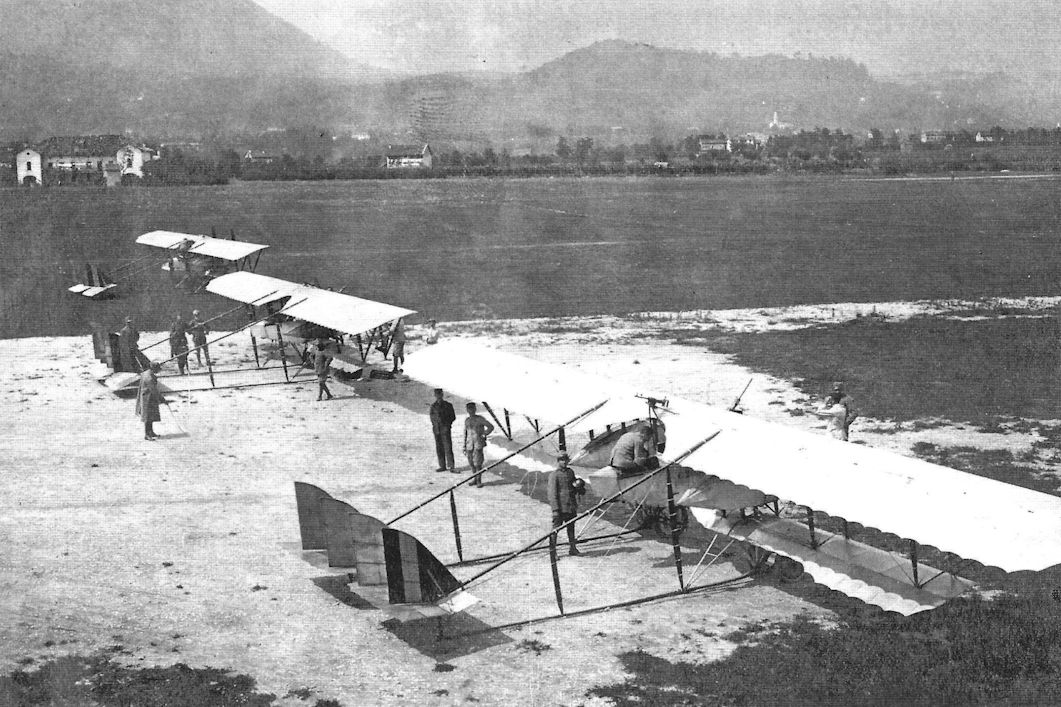 Three Caudron G.4s of the 2a Sezione of the 48a Squadriglia detached at Feltre airfield in June 1917. (Europeana)