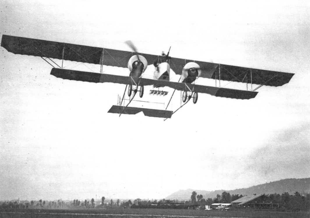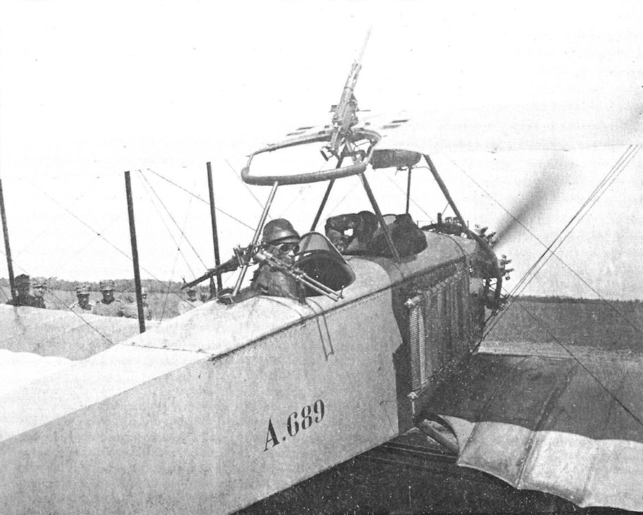 A Voisin with Isotta Fraschini engine of 25a Squadriglia with a full load of bombs and a Fiat and Villar Perosa guns. (Archive Caliaro)