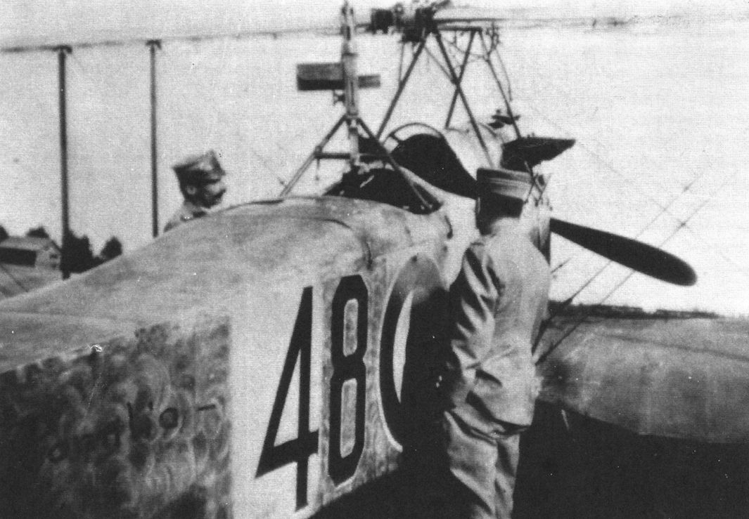 SP.3 4605, in the front cockpit is ten. oss. Eliso Panizzera. With this disposition, the airplane had no defense against attacks from the rear.