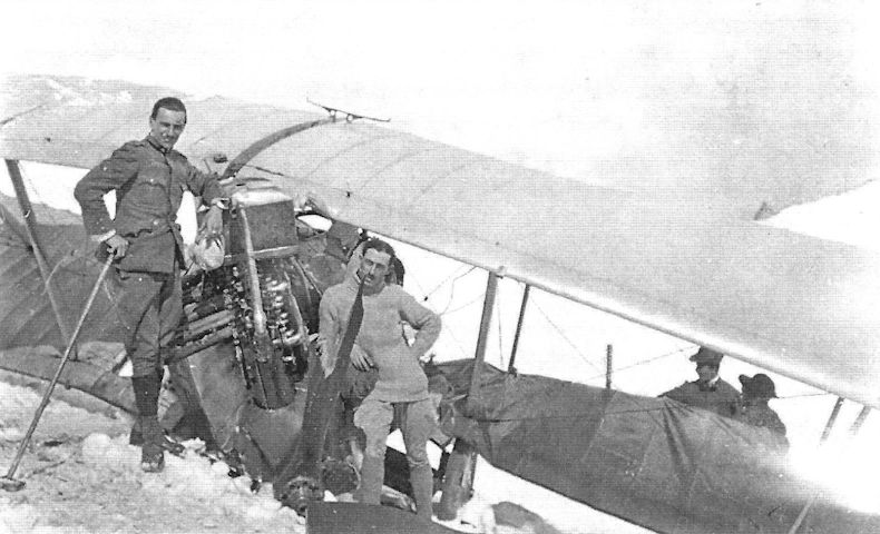 The SAML of cop. Pinna and s.ten. Moccafiche that on 3 August 1917 crash landed on the Adamello glacier. (Archive Fiorenzo Longhi)