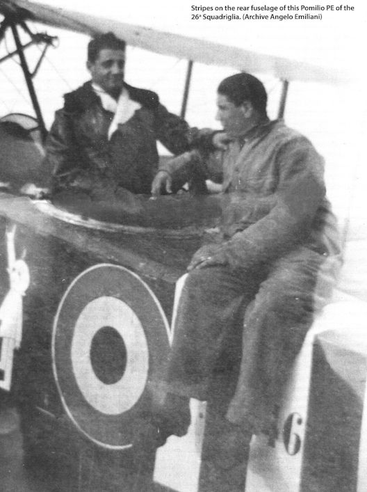 Pomilio PEs of the 26a Squadriglia lined up at Padua airfield for a patriotic ceremony show the insignia of the man pointing his finger.