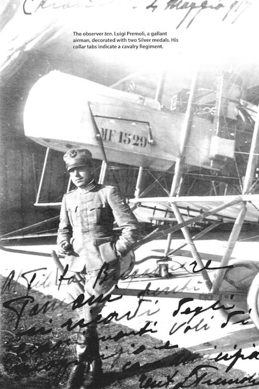 The observer ten. Luigi Premoli, a gallant airman, decorated with two Silver medals. His collar tabs indicate a cavalry Regiment.