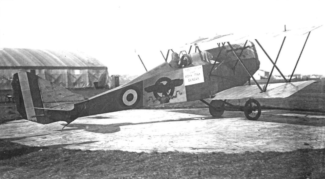 Pomilio PE 22039 of the 114a Squadriglia. The airman is cap. Napoleone Del Duca, commander of the XIX Gruppo to which the 114a Squadriglia belonged.