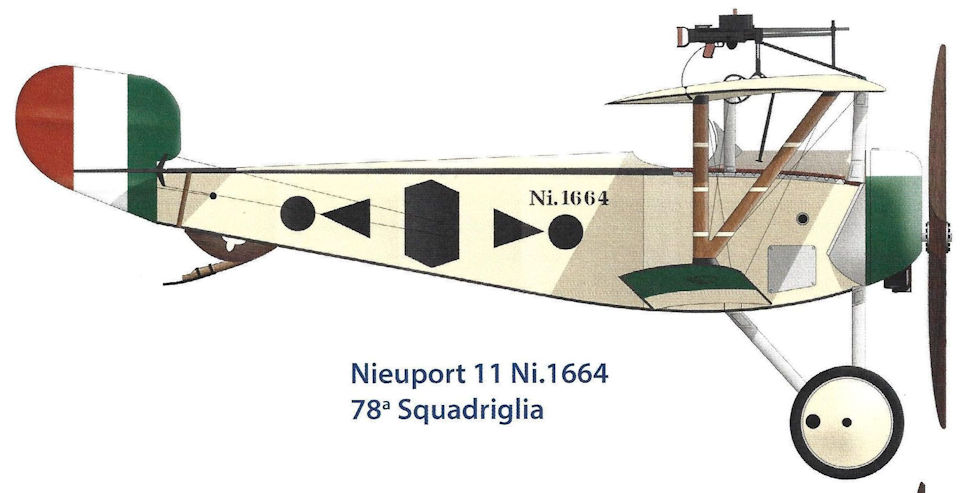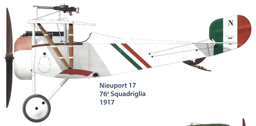 Sergente Giovanni Riva in a Nieuport 17 showing the simple markings of the 78a Squadriglia, a pennant.