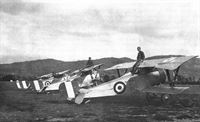 In 1918, the Italian Air Force sent two squadrons to the Orient Front, the 73a (fighter) and 111a (reconnaissance) Squadriglia. Here, Nieuport 27s of the 73a Squadriglia. (Coll. Paolo Varriale)