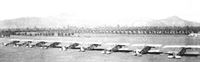 Airplanes of the 91a Squadriglia at Padua during the retreat, November 1917. Baracca's Spad is the last of the line. Among them there are Spads, Hanriots, and Ni.27s of other units.