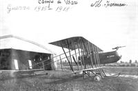 Prospero Freri, the pioneer of parachutes in Italy and designer of the Salvador parachute used in World War 2, with Farman MFC 2663 of the 101a Squadriglia at Bari.