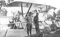 Magg. Baracca and ten. Ranza in front of the latter's Spad carrying the insignia of the ladder that he had taken up in memory of Sabelli.
