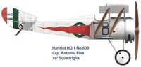 HD.1 of 81a Squadriglia. The Hanriot replaced the Nieuports as the standard Italian fighter; it was more robust and had better climb and maneuverability at altitude. It still mounted only one gun, but it was synchronized.