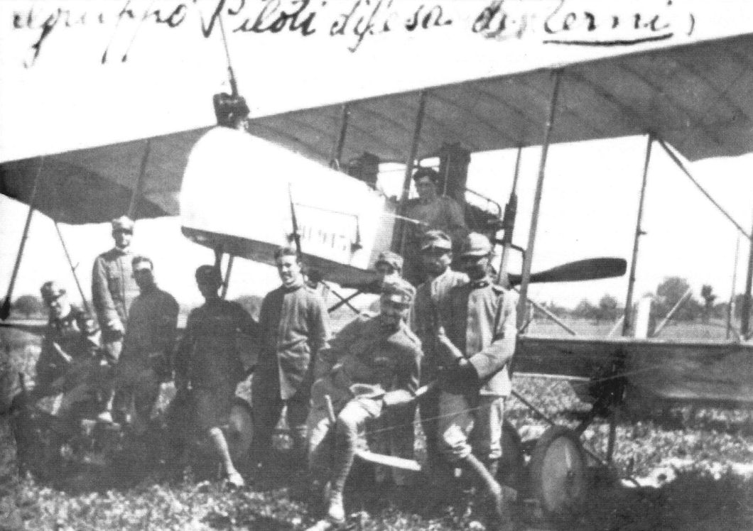 Farman Colomb 1719 of the Sezione Difesa of Ravenna. The pilot is ten. Enrico Cottino, who died on 16 May 1917. (Archive Caliaro)