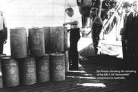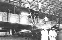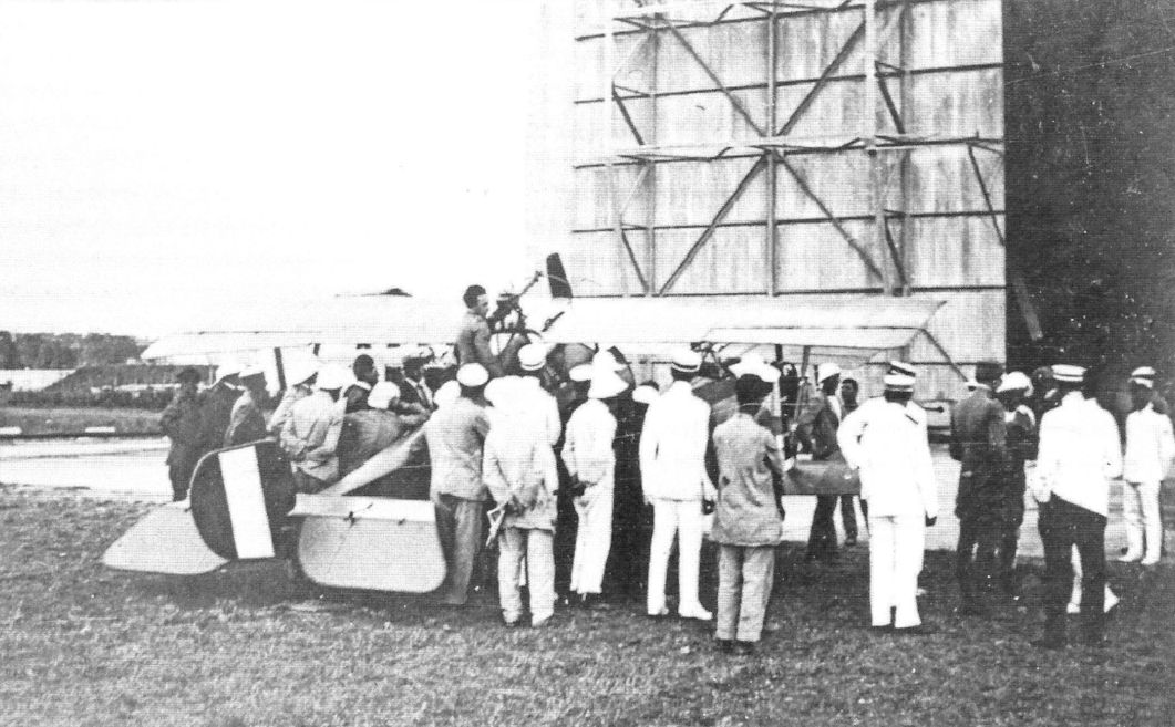 Japanese Naval personnel examining the S.16 ter of De Pinedo. On its hull it shows the insignia of Point Cook naval air station, Australia.