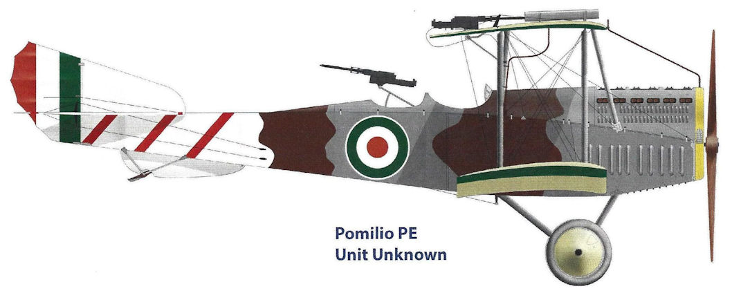 Unarmed SVA 6843 with pilot serg. Giovanni Trotti. The flag with the shield of the Visconti family, symbol of Milan, was clearly inspired from the flag of the 87a Squadriglia, with the Lion of St. Mark of Venice.