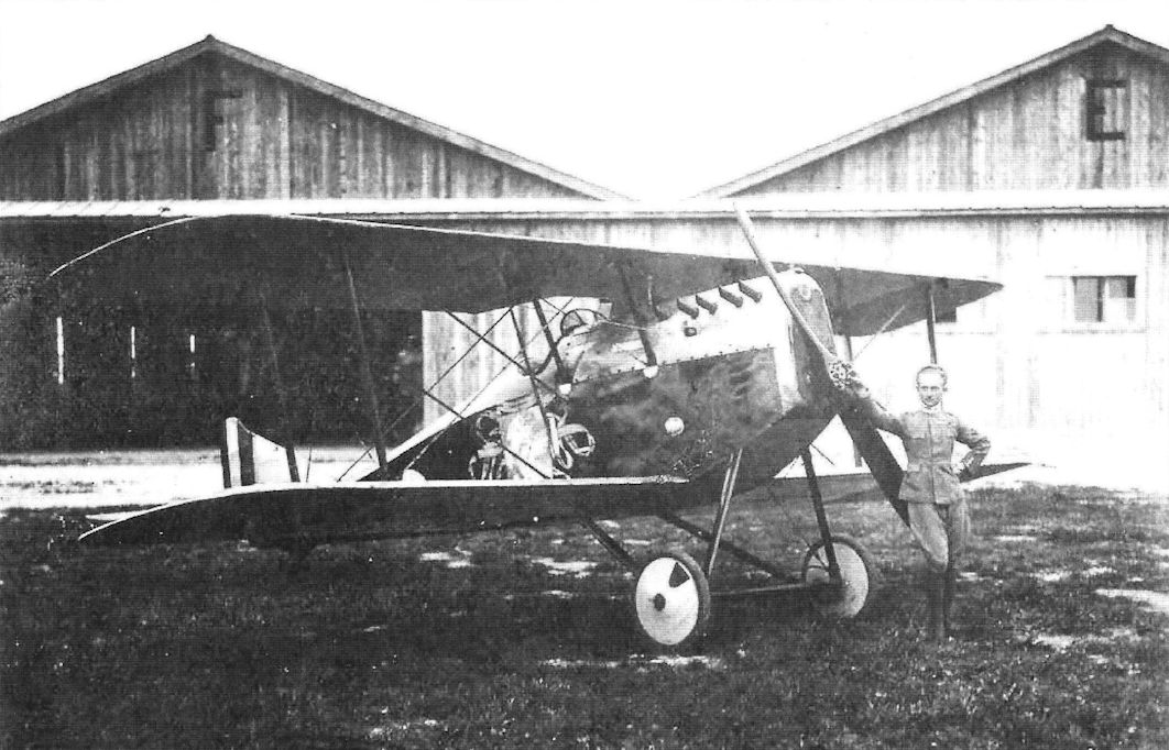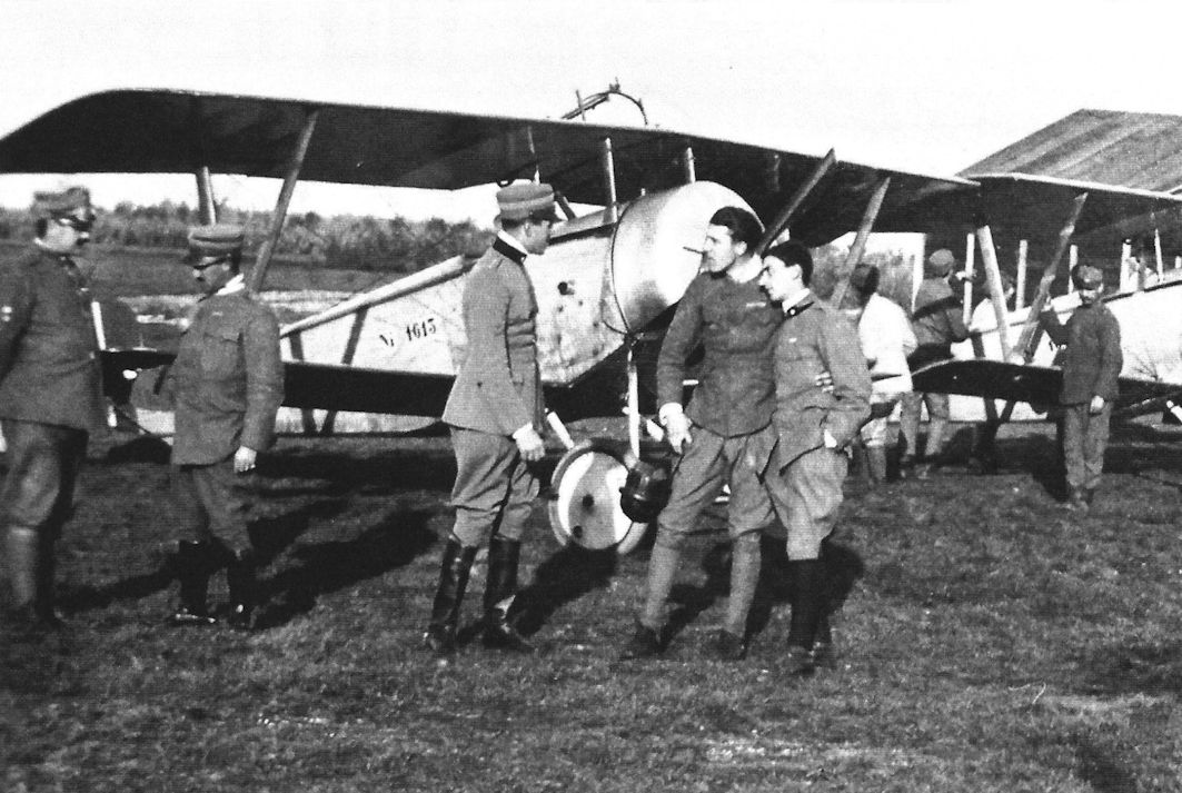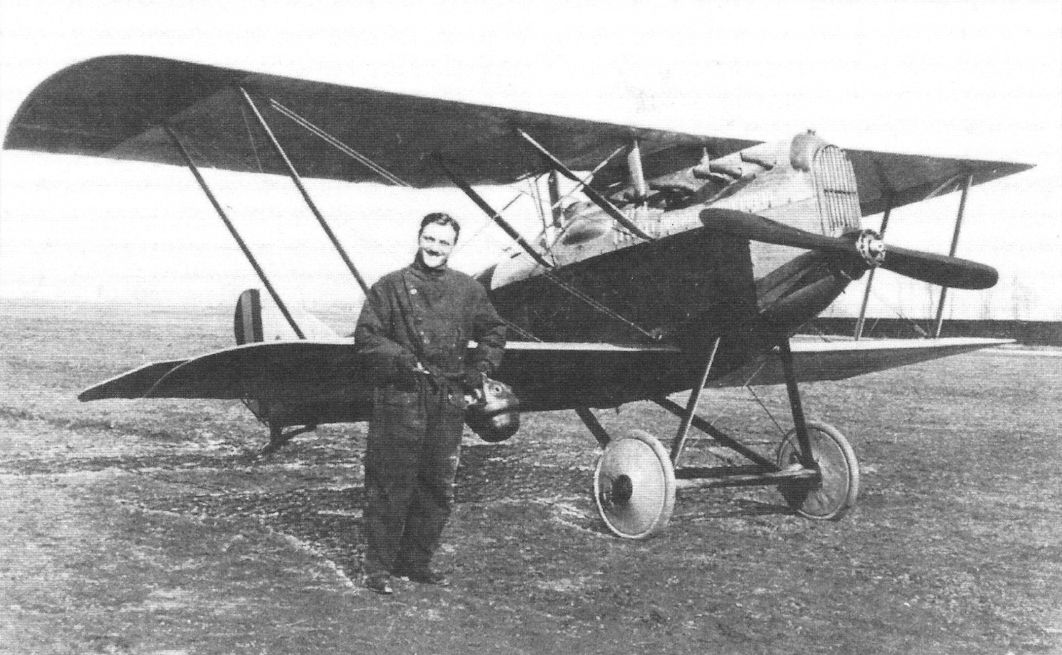 Pier Ruggero Piccio with his Nieuport 11 equipped with Le Prieur rockets that he used to destroy an Austrian kite balloon.