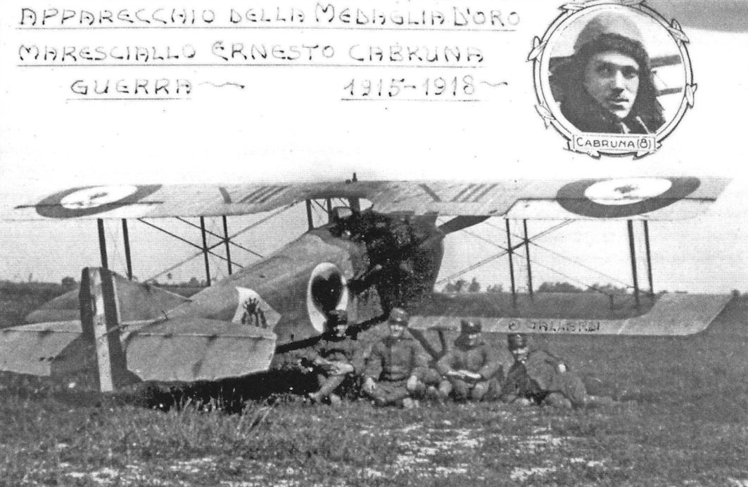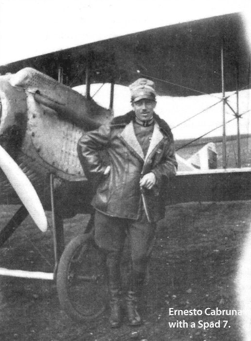 In the spring of 1918 Cabruna had the shield of his hometown, Tortona, painted on his Spad. This airplane was exhibited at Genoa in 1919, then in Tortona, in Milan in 1934, and is now in the Italian Air Force Museum.