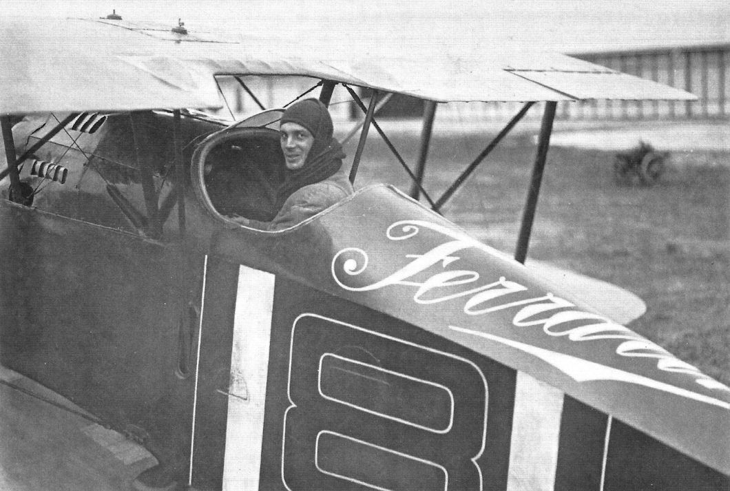 Arturo Ferrarin in an Ansaldo Balilla ready to fly aerobatics at an air meeting in Nice, France, 1919.