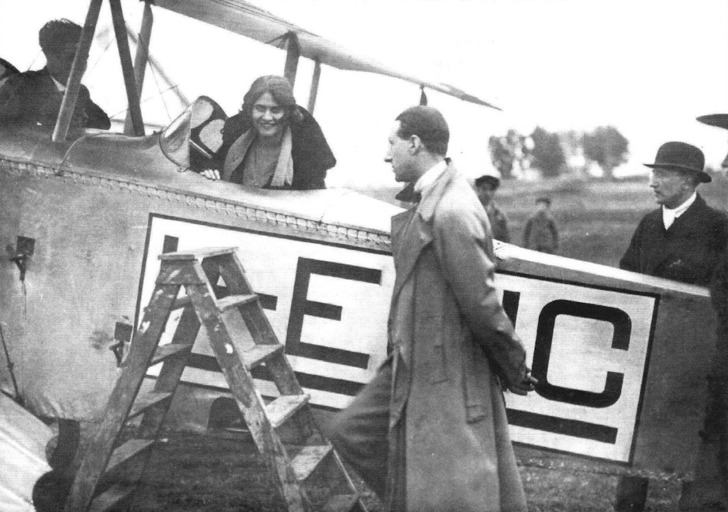 Finzi introducing his wife to flying, in Aviatik I-ECIC of the CNA company at Centocelle, Rome. His marriage had been a big social event in Rome.
