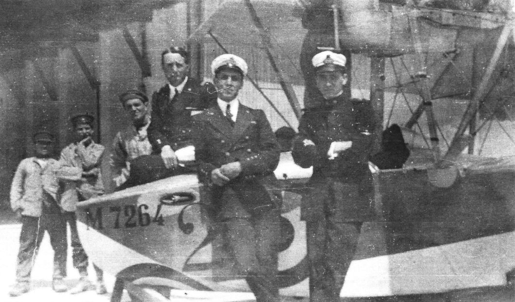 Elwood Doherty was an American instructor at Taranto; in December 1915 he was offered a decoration for a daring exploration flight, which he refused, being the citizen of a neutral country. In 1914 he was pilot of the modified Langley Aerodrome that Glenn Curtiss prepared, trying to prove that the Wright brothers were not the first to fly.