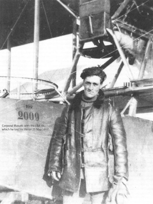 Guido Masiero, the future flyer from Rome to Tokyo, with SVA 6839 of the 3a Sezione. This SVA crashed on 30 June 1918, killing ten. Vivarelli.