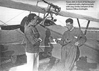 Fucini, left, in front of his Nieuport 11 adorned with a lightning bolt, with serg. Emilio Zampieri of the Sezione Difesa Grottaglie.