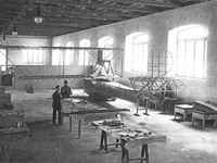 The Breguet at Mirafiori; behind it the airship hangar of that airfield. (Archive Lino Schifano)