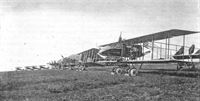 A Row of Pomilio S.P. (Savoia-Pomilio Biplanes. S.P.s in S.P.2, 3 and 4 version served from 1915 onwards as reconnaissance and artillery observation biplanes. S.P.2 version used one 260 h.p. Fiat A.12 engine to achieve 91 m.p.h. Those illustrated are probably 300 h.p. A 12 bis-powered S.P.3s.