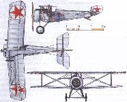 DH-4 "Дукс" - в конце 1917 года российский завод "Дукс" получил чертежи D.H.4 и начал освоение этой машины. Подготовка производства продолжалась и в годы Гражданской войны. С 1921 года самолет стал выпускаться небольшими сериями с различными двигателями под марками Р-I и Р-II. Ставились разные двигатели: "Фиат-12" (240 л. с.), "Сиддли-Пума" (220 л. с.) или "Даймлер" (260 л. с.). На одном самолете поставили стойки из стальных каплевидных труб, на другом - трофейный двигатель "Майбах" (260 л. с.). Всего построено около 20 машин, причем все они имели либо трубчатые боковые радиаторы, либо сотовые над центропланом.