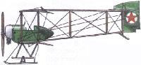 У-1 - самолет первоначального обучения, строившийся в СССР с 1921 по 1932 год по образцу английского "Авро-504K". Отличался конструкционными материалами (сосна вместо ясеня и красного дерева, сталь вместо медного листа) и технологией изготовления. Двигатель М-2 (120 л. с.). При проверке на прочность испытания показали соответствие машины современным требованиям.